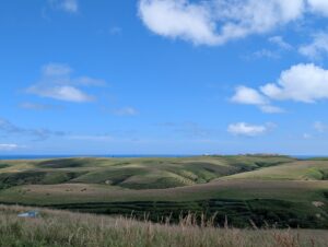 宗谷丘陵白い道へ。天気も快晴で景色がとてもきれいです。(撮影が上手じゃないけど)