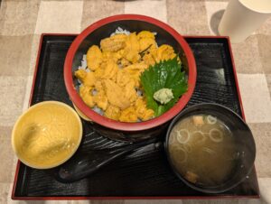 そして、お昼ご飯は豪華に「うに丼」旨し旨し旨し。ほんとは「最北の米軍バーガー デノーズ」というハンバーガーがおいしいと教えてもらっていたけど売り切れで食べれず・・