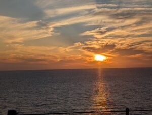 うに丼を食べていざ札幌へ!ひたすら景色の良い海岸沿いを走り焼尻島天売島もうっすら。厚田あたりで夕焼けを見ながら走り