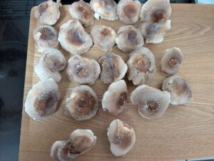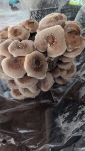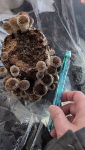 収穫してもまだ小さいしいたけが数個。。全部収穫して休養させて再栽培をしてみようと思う。。